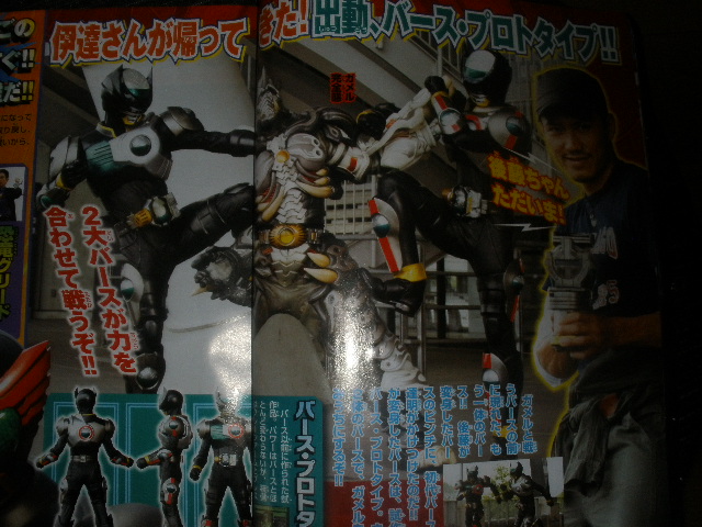 After Date left, Gotou took on the role of Birth. Date finally comes back and transforms into Birth Prototype. Before Birth was created, there was an early prototype. They are both equally strong, but Birth Prototype is only able to use the Crane Arm and the Breast Cannon. And now for the movie scans: